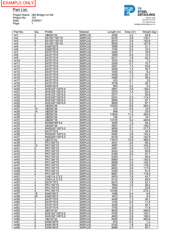- Material Lists (for ordering)