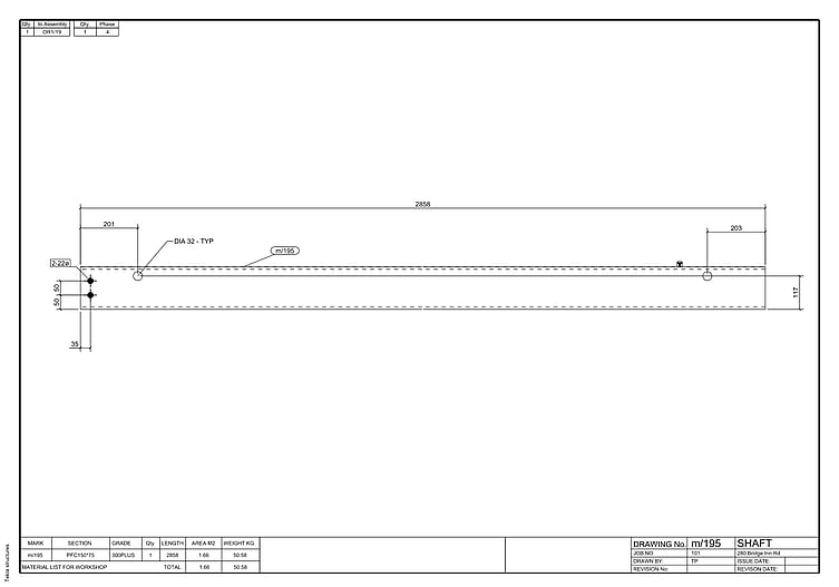 - Single Part Drawings (Shafts and Plates)