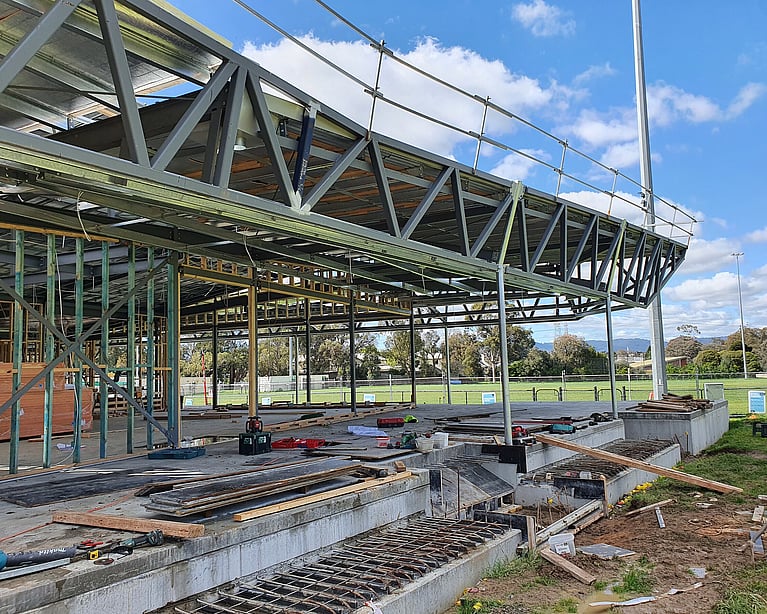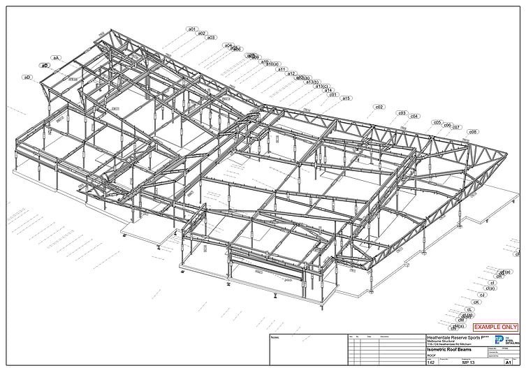 We provided a full set of erection and shop drawings for a sports pavillion facility at Heatherdale reserve in Mitcham. We were hired for this job due to our competance with complex 3D modelling which was particularly useful due to the challenging nature of all the angled trusses. Not many straight pieces of steel in this project, but we love a challenge and the results speak for themselves!