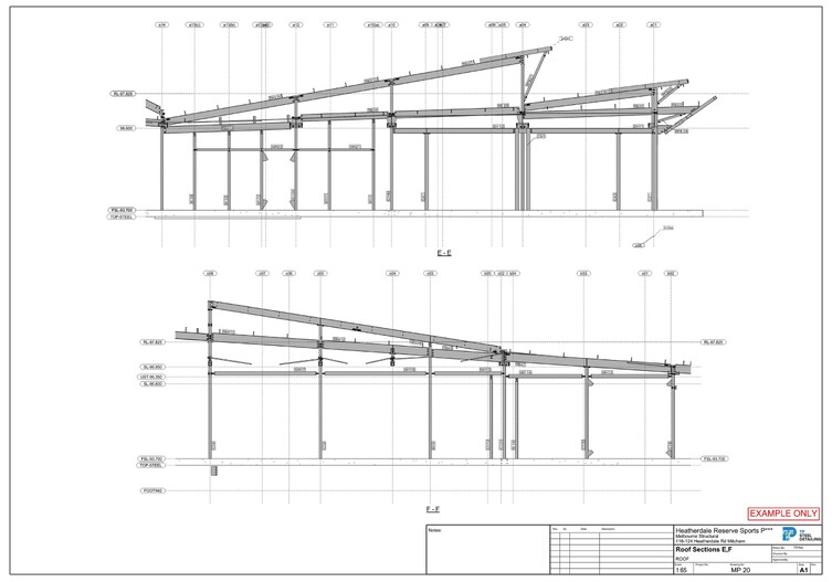 We provided a full set of erection and shop drawings for a sports pavillion facility at Heatherdale reserve in Mitcham. We were hired for this job due to our competance with complex 3D modelling which was particularly useful due to the challenging nature of all the angled trusses. Not many straight pieces of steel in this project, but we love a challenge and the results speak for themselves!