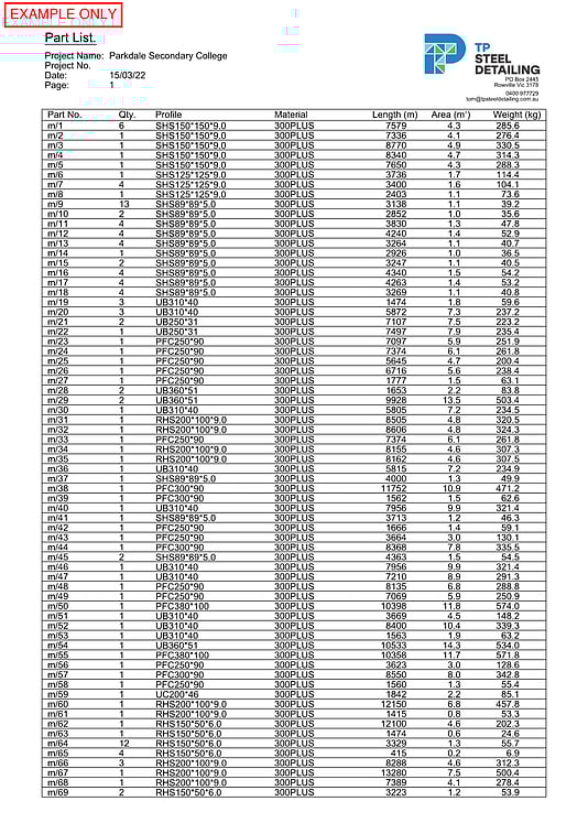 - Material Lists (for ordering)