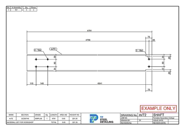 - Single Part Drawings (Shafts and Plates)