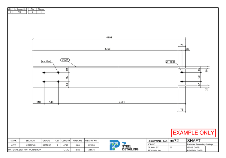 - Single Part Drawings (Shafts and Plates)
